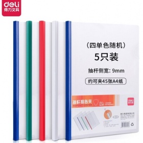 得力 5531A 文件夹 5只A4透明拉杆夹文件夹 15.5mm背宽彩色抽杆夹报告夹 (5个/包)*1