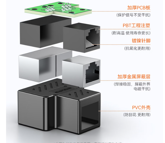 秋叶原/CHOSEAL 1-2 塑料制品网线分线器 一拖二一对使用同时上网网线转接头