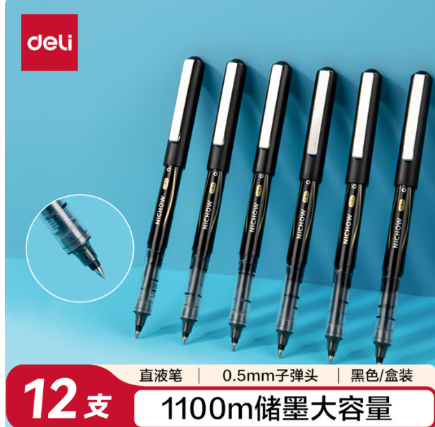得力/deli S656 书写用笔类用具 直液笔签字笔 0.5mm子弹头办公商务中性笔 水笔走珠笔