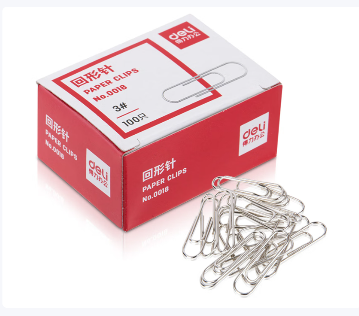 得力/deli 0018 曲别针金属回形针 镀镍防锈曲别针 100枚/盒